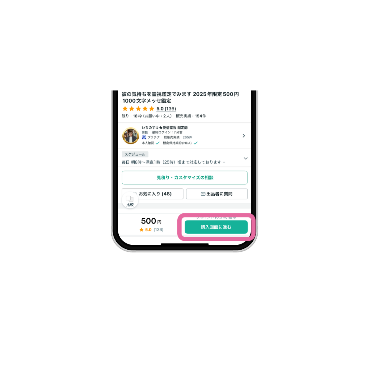 取引のトークルームで相談内容を送ったら鑑定結果を待つのみ!
